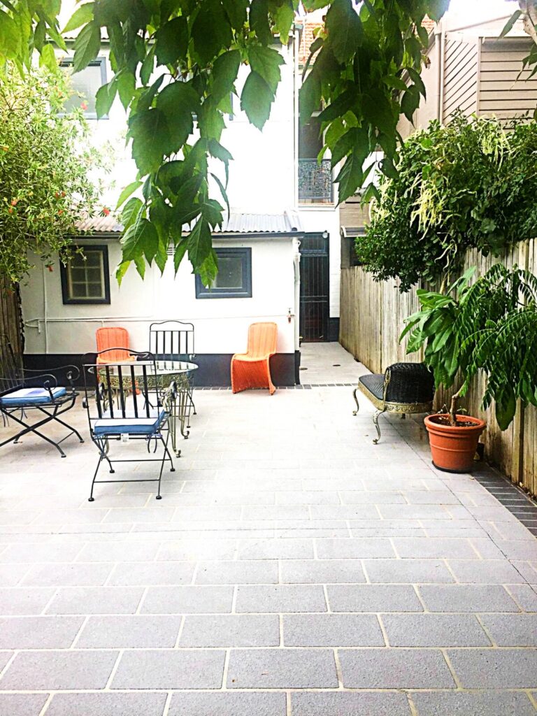 The home has a truly beautiful back Courtyard area. It is full of beautiful plants and coverage from well developed trees. The Courtyard has lovely European styled furniture. There is a great BBQ. This area is a wonderful oasis in the inner city of Sydney. The Courtyard is blessed with a generous coverage of sunlight all year around, and in the mornings it is an outstanding area for breakfast and coffee.